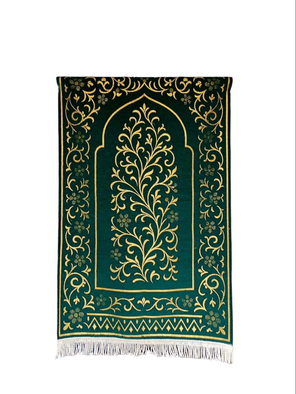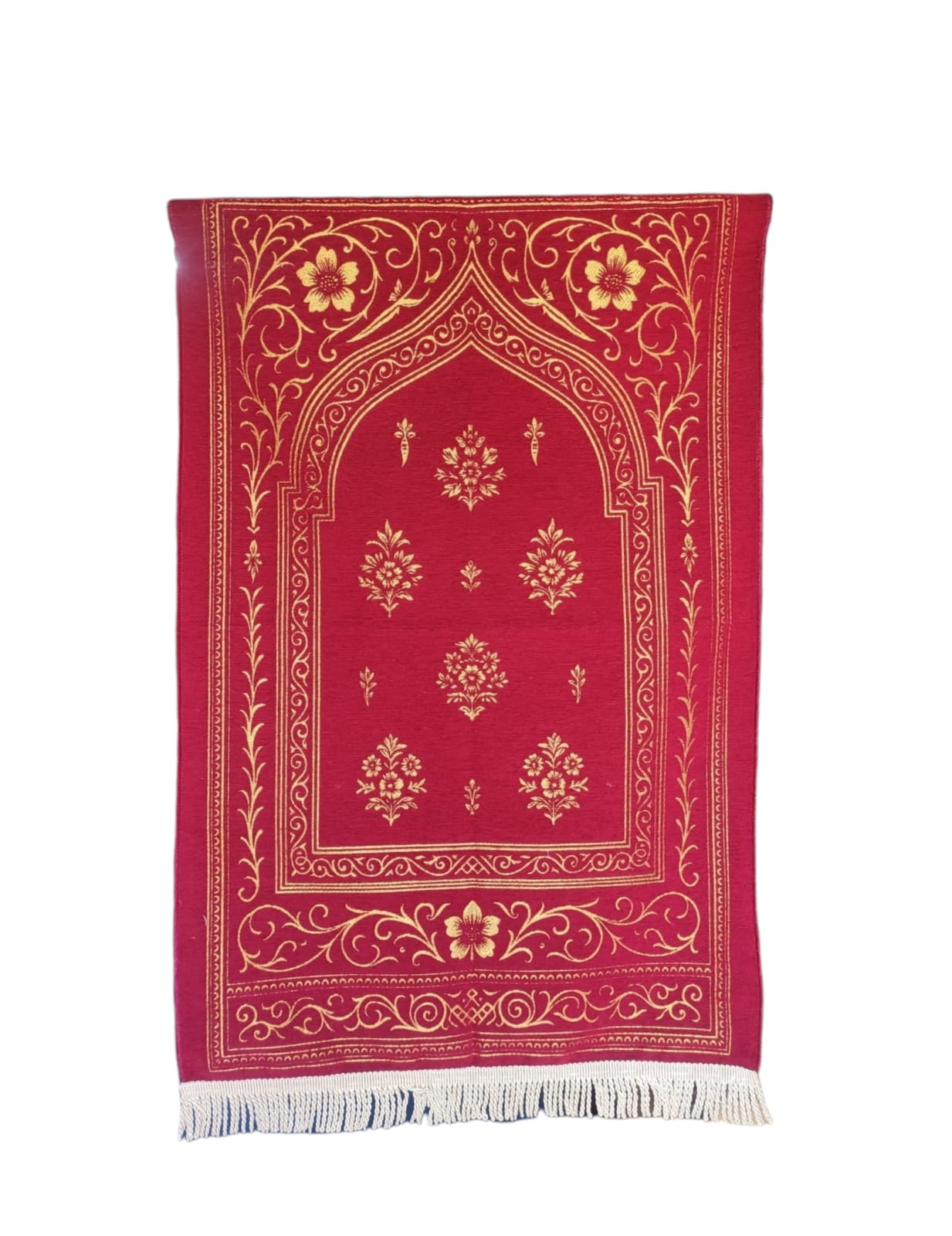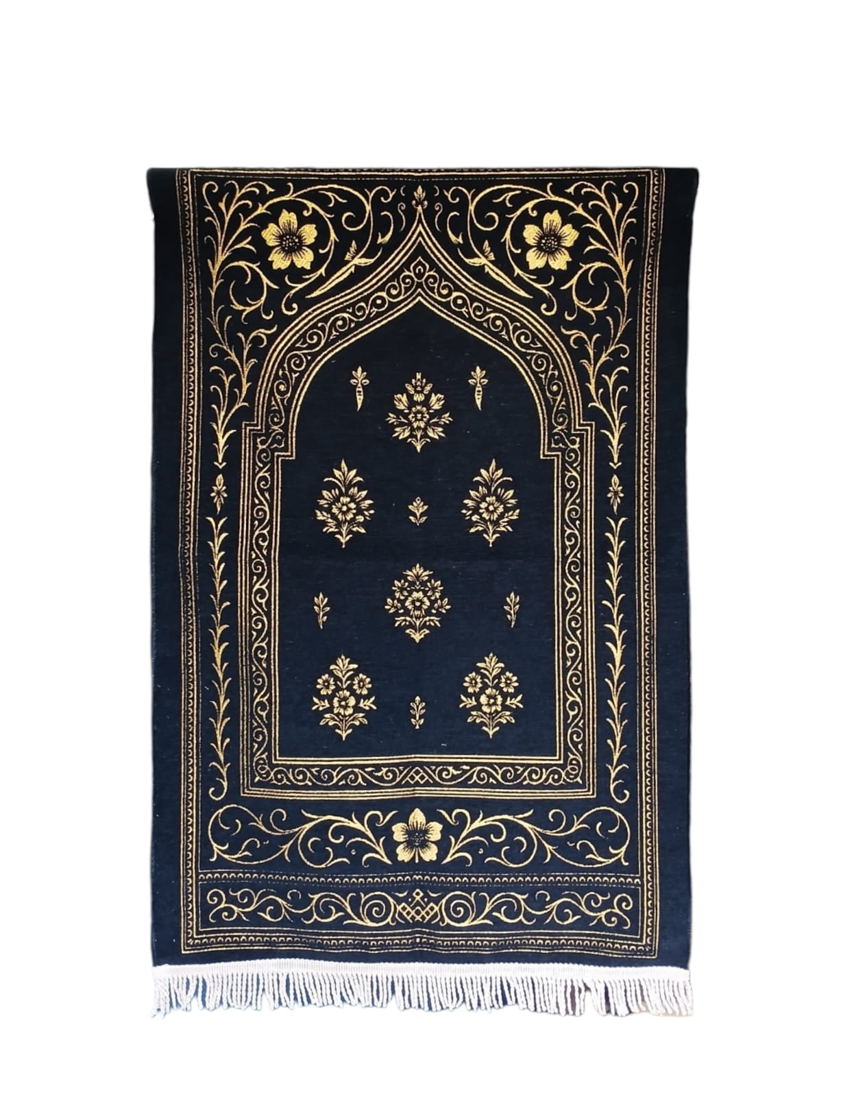 Our prayer rugs feature high-density embossed chenille that provides a plush, velvety feel. Designed with a blend of traditional Islamic motifs and contemporary aesthetics, they are perfect for premium retail markets and luxury gifting.