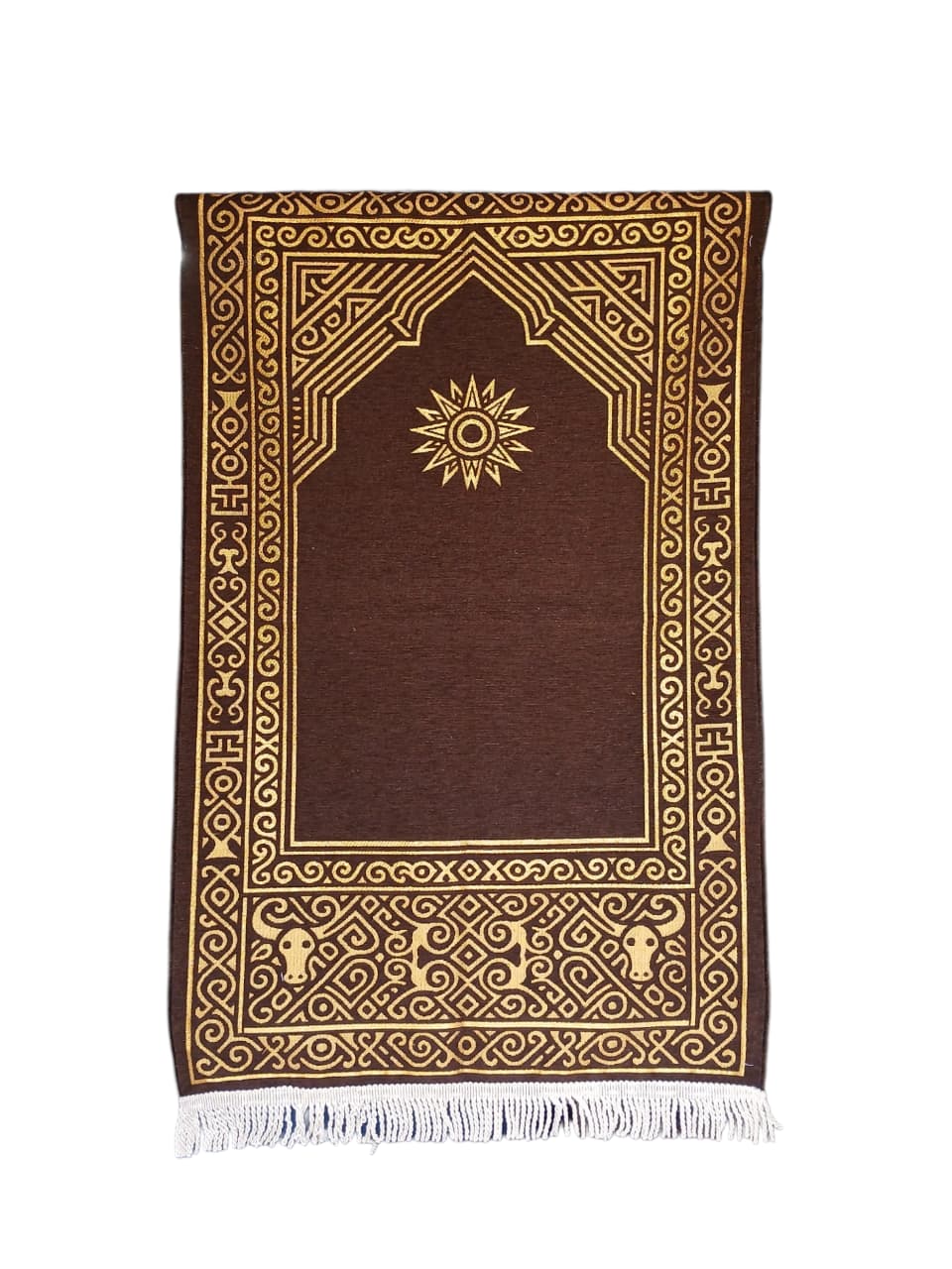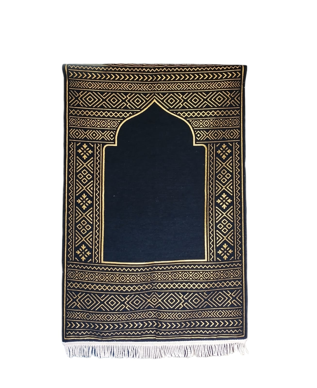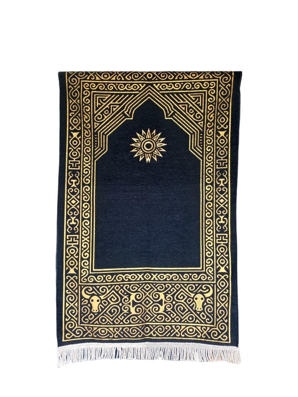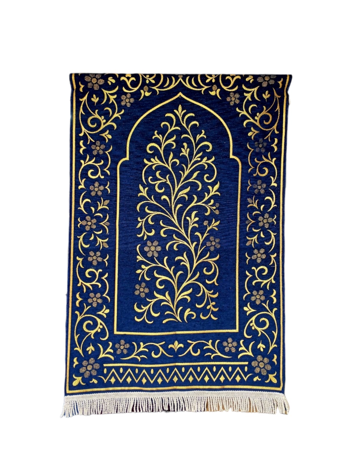 Our prayer rugs feature high-density embossed chenille that provides a plush, velvety feel. Designed with a blend of traditional Islamic motifs and contemporary aesthetics, they are perfect for premium retail markets and luxury gifting.
